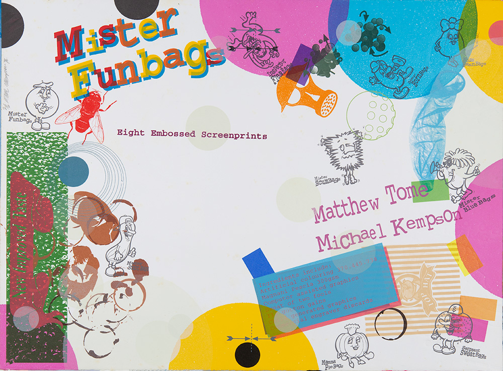 Mister Funbags Title Page screenprint on Magnania Pescia 56x76cmm