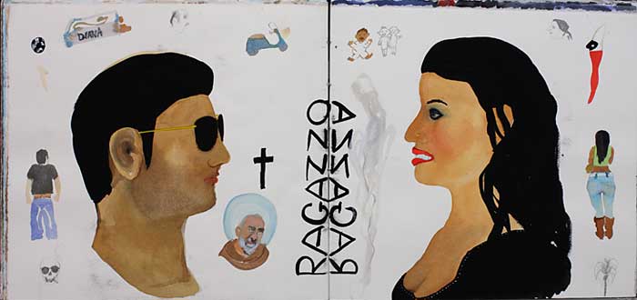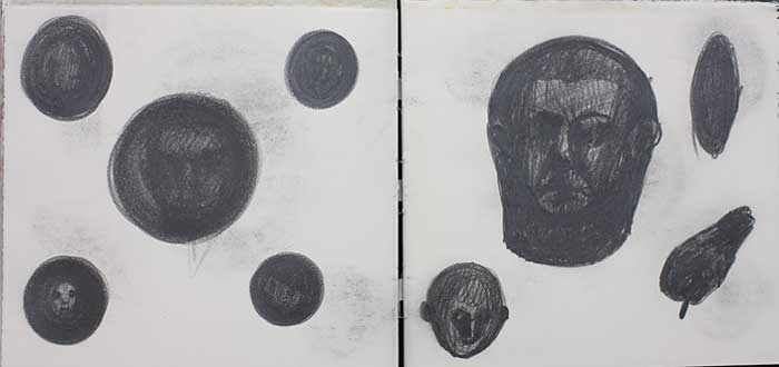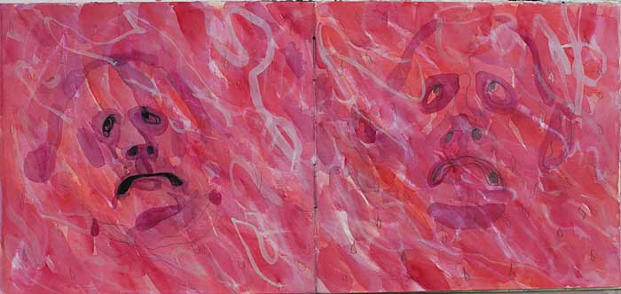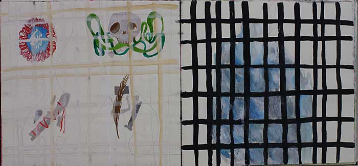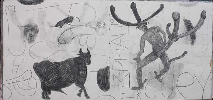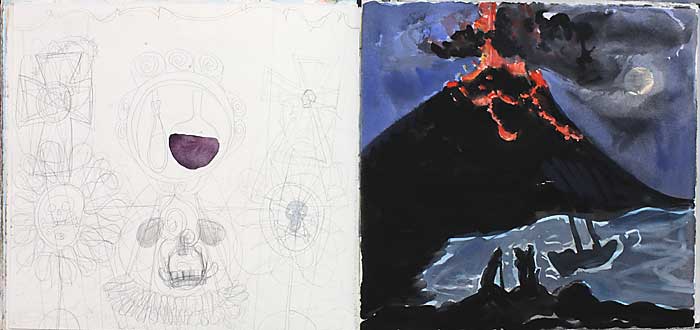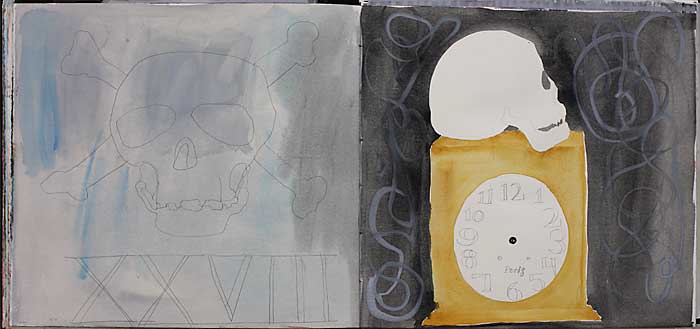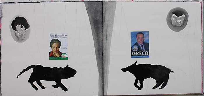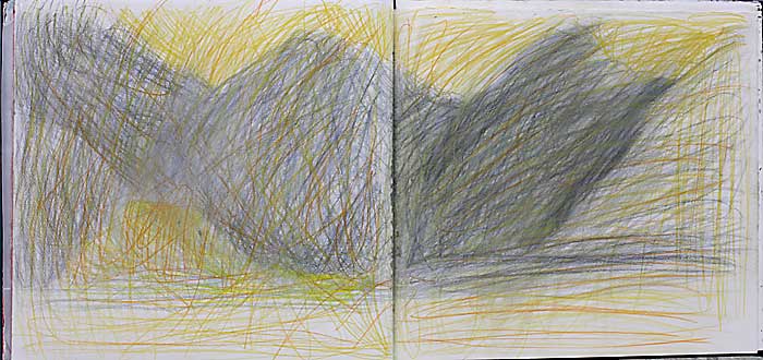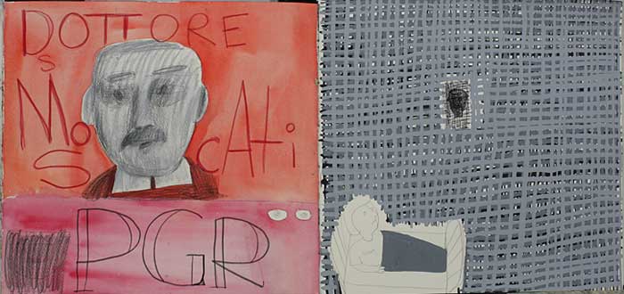 Handmade drawing book 2008 "Hotel Journal" open page 36x76cm various mediums on velin arches
